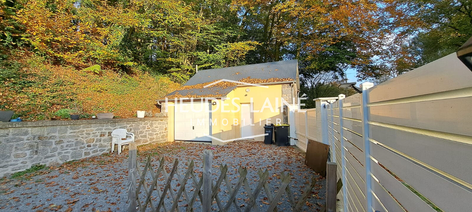 - A l'extérieur : cour gravillonnée, portail électrique, garage avec porte de garage électrique. Le tout sur une parcelle de 287m2.